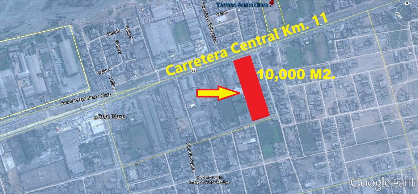 • UBICACIÓN: Alt. del Km. 11 de la Av. Nicolás Ayllón, Urb. Santa Clara, Distrito de Ate. Terreno con doble frente.