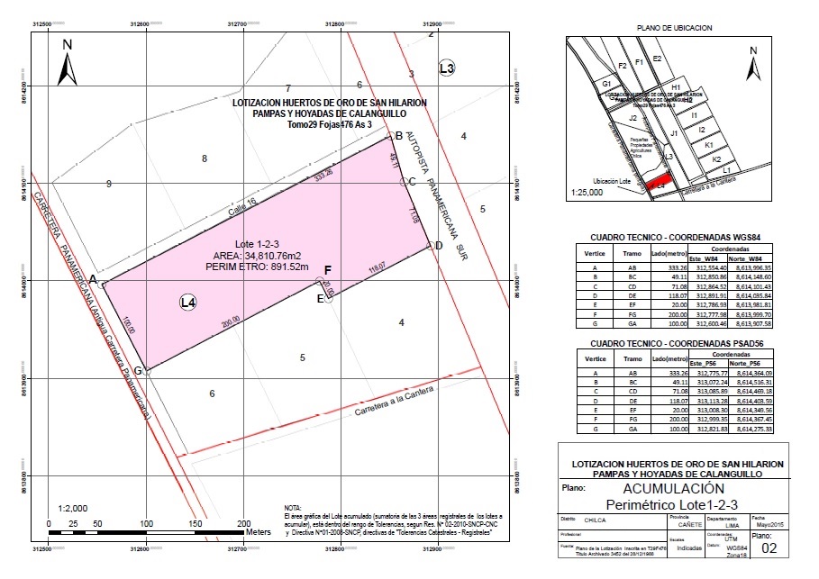 PRECIO DE OCASIÓN POR M2. = US$. 95.00 – NEGOCIABLES.